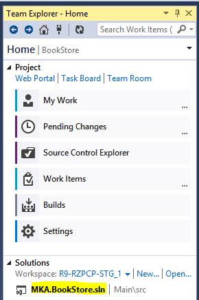 Alle Arbeit, die man jetzt tut ist automatisch mit diesem WorItem verknüpft. In unserem Fall öffne ich die Solution aus dem DEV-Branch und beginne die Arbeit.