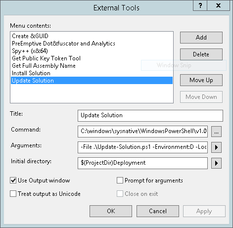 But developers are lazy – and it’s so easy to click “Deploy” in VS that normally the deployment scripts are poorly tested. To get the developers to use and test the deployment scripts you have to integrate them in visual studio.