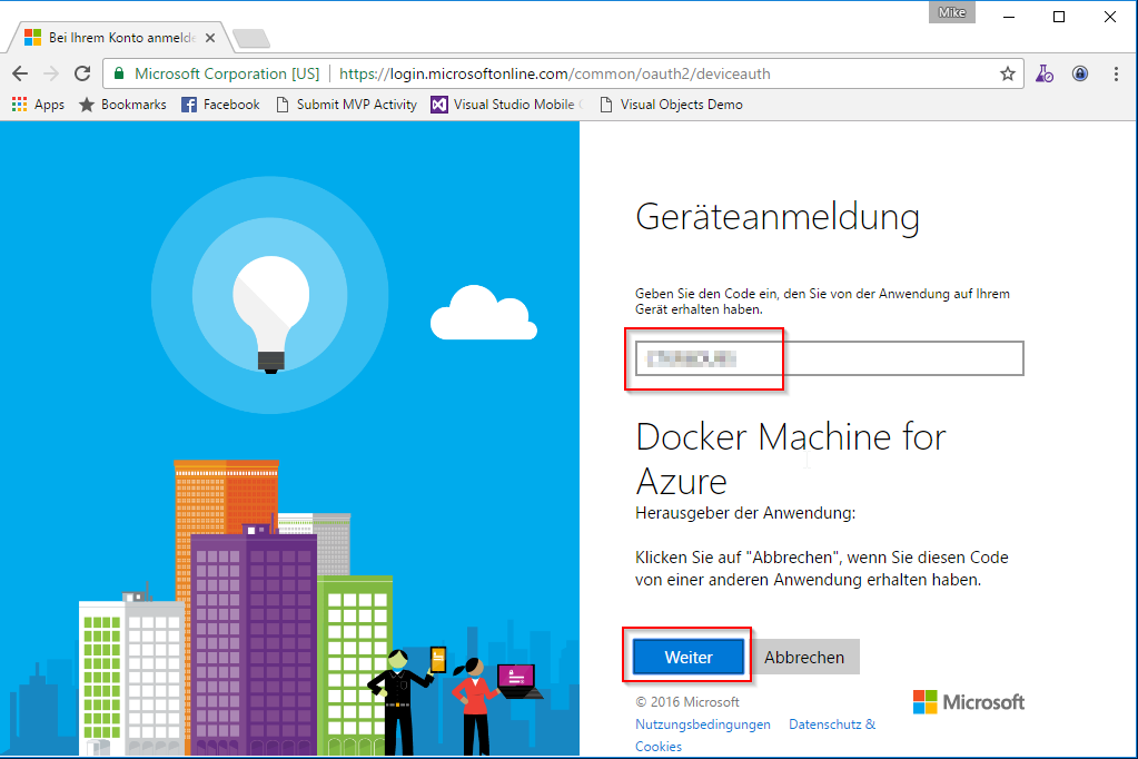 docker-machine create --driver azure --azure-subscription-id {subscriptionid} --azure-location westeurope --azure-resource-group {resourcegroup} {machinenameinlowercase}