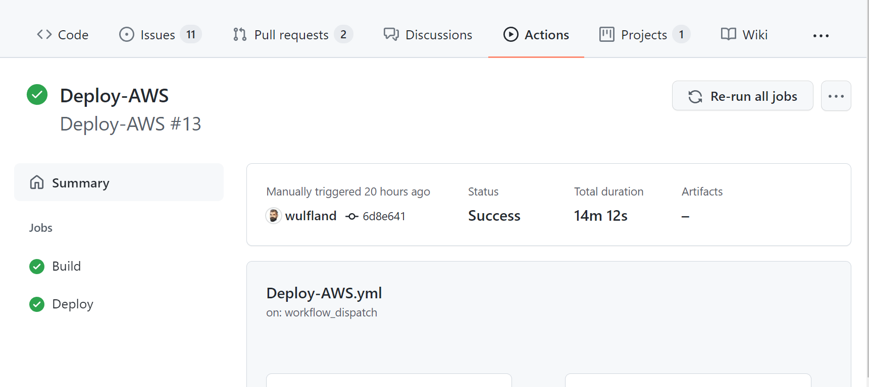 It took me some time to figure this out. The documentation on GitHub is not very helpful for the AWS part and it also does build and deployment in a single job. I also did not find simple ways to deploy ECS. So I thought I share my findings here. If you know better ways to deploy and clean up the resources on AWS, make sure to let me know.